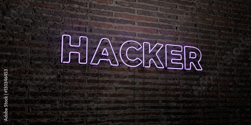 Hacker Neon Sign Glowing Neon Sign On Brickwall Wall 3d